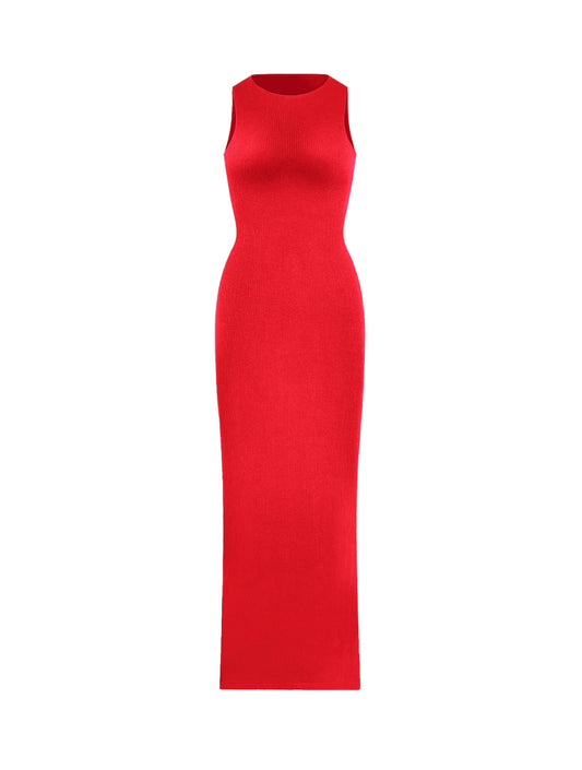 Sukienka Midi Bodycon Shapewear z Krótkimi Rękawami i Rozcięciem